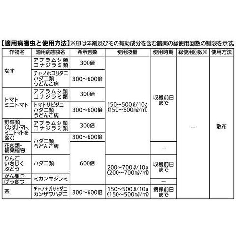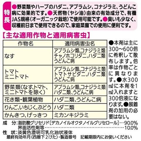 ◆野菜類やハーブのハダニ、アブラムシ、コナジラミ、うどんこ病の防除に効果的です。