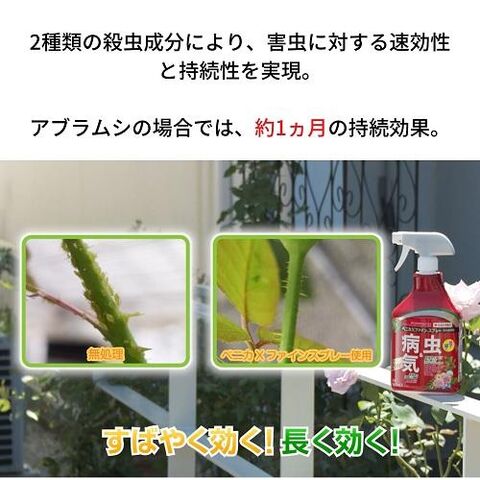 ◆害虫に対しては速効性と持続性(アブラムシで約1ヵ月)を実現。