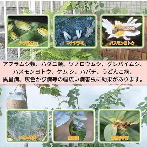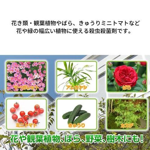 ◆花や緑の幅広い植物に使える殺虫殺菌剤です。