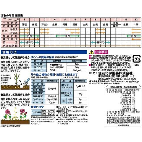 ◆土に活力を与える腐植酸と植物性有機質を配合した、ばらのための緩効性粒状肥料(特許第4923502号:住友化学(株))。