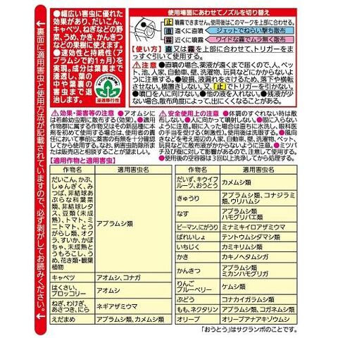 ◆幅広い害虫に優れた効果があり、だいこん、キャベツなどの野菜、うめ、かき、かんきつなどの果樹に使えます。