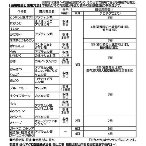 - 有効成分:クロチアニジン