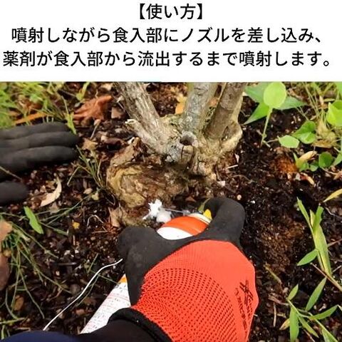 ◆専用ノズル(3方向噴射式)で樹幹に食入したカミキリムシ幼虫を退治。
