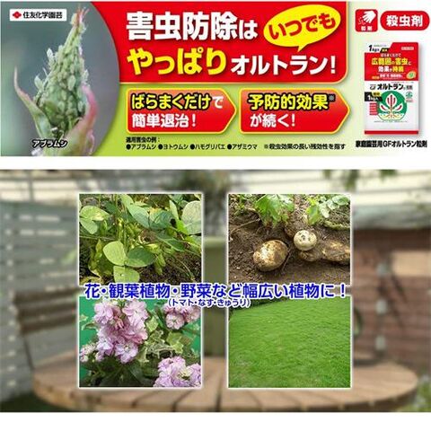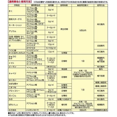 ◆本剤は吸汁性害虫(アブラムシ等)及び食害性害虫(ヨトウムシ、アオムシ等)に効果のある浸透移行性殺虫剤。