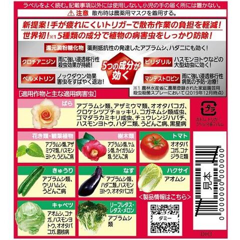 ■有効成分:還元澱粉糖化物・クロチアニジン・ピリダリル・ペルメトリン・マンデストロビン