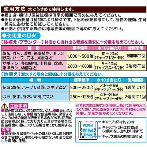 すばやく効いて、植物を元気に育てる液体肥料です。