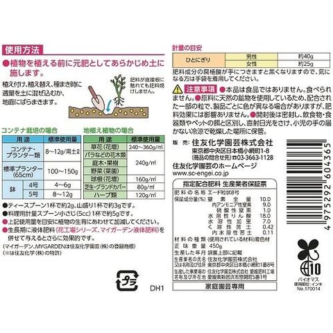 KINCHO園芸 マイガーデン 元肥用 450g マイガ-デン モトヒヨウ 450G 【返品種別A】