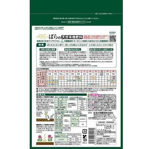 ◆土に活力を与える腐植酸と植物性有機質を配合した、ばらのための緩効性粒状肥料(特許第4923502号:住友化学(株))。