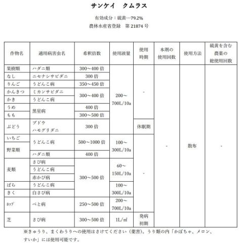 ◆天然由来の純粋な硫黄なのでイヤなニオイがなく、植物のダニや病気対策へ回数制限なく使えます。