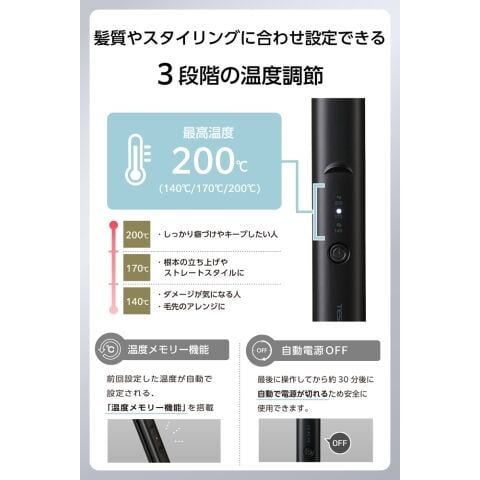 温度は140℃/170℃/200℃の3段階で調節可能。