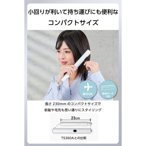 長さ230mmのコンパクトサイズで動かしやすく、前髪や毛先も思い通りにスタイリングできます。