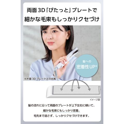 両面3D「ぴたっと」プレート搭載。髪の流れに沿って両面のプレートが上下左右に傾いて、