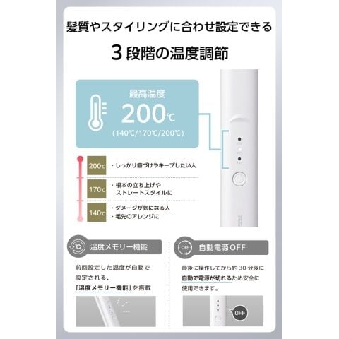 温度は140℃/170℃/200℃の3段階で調節可能。