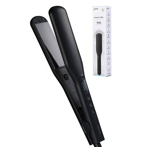 幅45mmのワイドプレートだから、多めの毛束でも一気に挟めます。