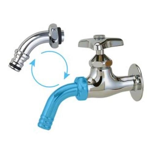 ◆万能ホーム水栓のパイプを交換するだけで、ワンタッチでホースの接続ができます。