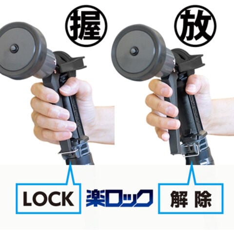 ラクロックノズルでレバーを握ると連動してストッパーがロックし、