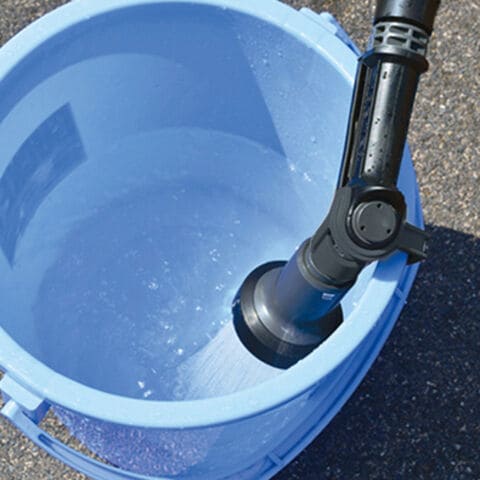 ブラシの中央部分から通水しながらデッキやタイルをブラッシングができる伸縮型のブラシもございます。
