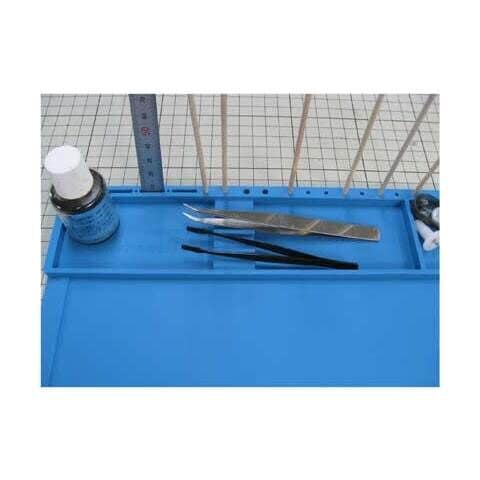 小さく仕切られたスペースを活用し、部品分けや、プラモデル用接着剤を置くなど、きれいな作業台をキープ!
