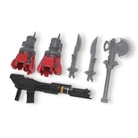 本体×1 ハンドパーツ×3セット ハンドパーツ(指可動あり)×1セット 交換用顔パーツ×1 レーザーライフル×1 イオンブラスター×2 エネルゴンソード×1 エネルゴンアックス×1 エネルゴン型ディスプレイスタンド×1 ★目とイオンブラスターに発光ギミック付き!