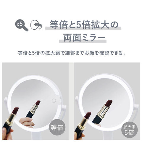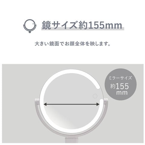 3色LEDライト調色調光機能や小物を置けるトレーとスマホを置けるスタンド付きミラー。