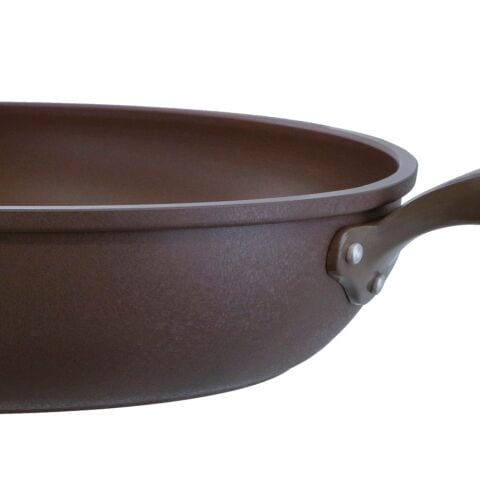 - 材質:本体/アルミニウム合金、はり底/ステンレス鋼(クロム16%)、表面加工:内面/ふっ素樹脂塗膜加工、外面/焼付塗装(底面を除く)、ハンドル/フェノール樹脂・ナイロン