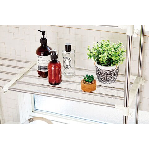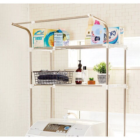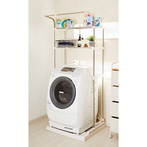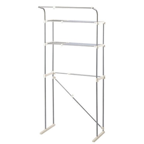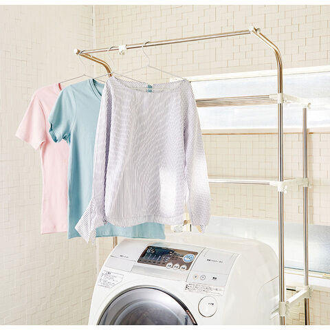 ベストコ 防水パンにも置ける ステンレス伸縮式洗濯機ラックハンガー掛け付(ライトグレー) NY-292 【返品種別A】