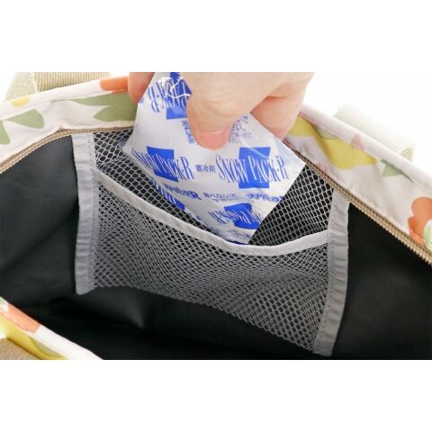 ◆小物入れに便利な外側ポケット2個、内側には保冷剤ポケット付き