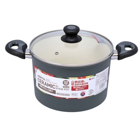 リブプラス アリエッタセラミック IHシチューポット22cm/ダークグレー(22cm/ダークグレー) アリエッタセラミック IHシチューポット22cm/ダークグレー ND-3618 【返品種別A】