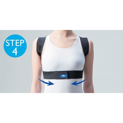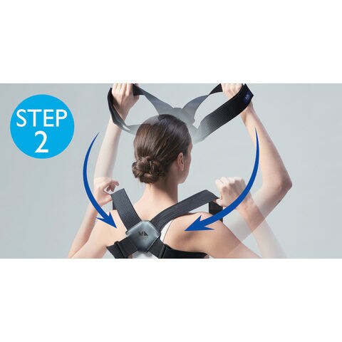 後方へ働くことで、上体がピンと起き上がり、美しい姿勢をづくりを楽にサポートします。