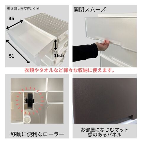 - 引出し1個内寸:幅51×奥行35×高さ16.5cm