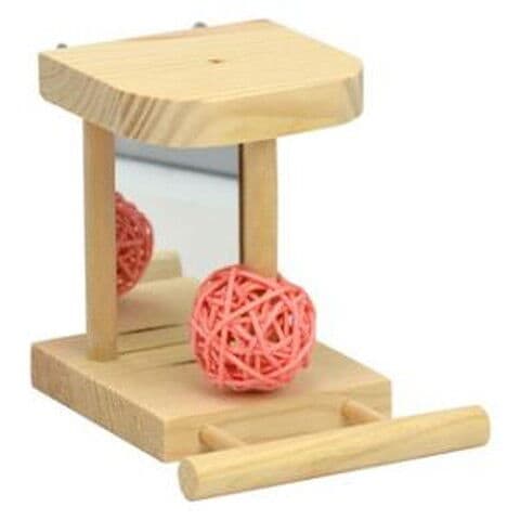 ◆鏡にオモチャが付いた、かわいい小鳥用パーチ