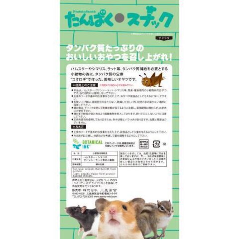 ※本品は、ハムスター・ファンシーラット・シマリス等、肉食・雑食傾向の小動物用のおやつです。他の目的には使用しないで下さい。