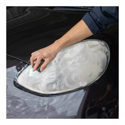 2.クリーナーパッドの白いフェルト全面に水を含ませ、ヘッドライト表面を磨く。