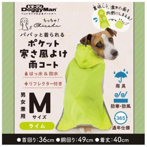 ドギーマンハヤシ Chiccha! パパッと着られる ポケット寒さ風よけ雨コート M(ライム) ポケツトカゼヨケアメコ-トMライム 【返品種別B】