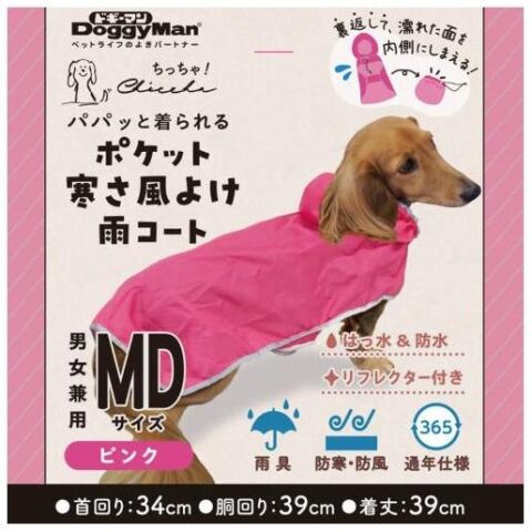 ドギーマンハヤシ Chiccha! パパッと着られる ポケット寒さ風よけ雨コート MD(ピンク) ポケツトカゼヨケアメコ-トMDPI 【返品種別B】