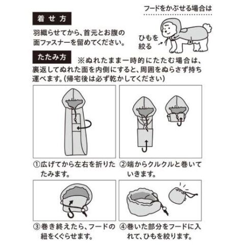 ◆ちっちゃく畳んで一緒のお出かけにいつでも持っとこ♪小さくたためる犬用レインコートです。