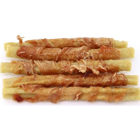 ◆魚と鶏の軟骨が入った噛みごたえあるスティックに、白いむね肉を巻きつけました