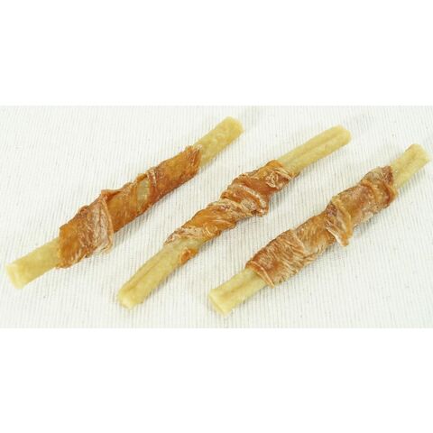 ◆魚と鶏の軟骨が入った噛みごたえあるスティックに、白いむね肉を巻きつけました