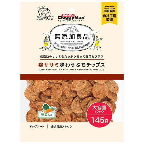 ドギーマンハヤシ 無添加良品 鶏ササミ味わうぷちチップス 野菜入り 145g ムテンカトリササミアジワウフヤサイ 【返品種別B】