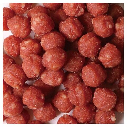 ■原材料:肉類(鶏肉、鶏ササミ、鶏コラーゲン)、小麦粉、大豆たん白、糖類、パン粉、植物油脂、乳酸菌、グリセリン、ソルビトール、トレハロース、保存料(ソルビン酸カリウム、デヒドロ酢酸ナトリウム)、ミネラル類(ナトリウム)、香料、酸化防止剤(ビタミンE)、発色剤(亜硝酸ナトリウム)、リン酸塩(Na)、着色料(カラメル、二酸化チタン、赤106)
