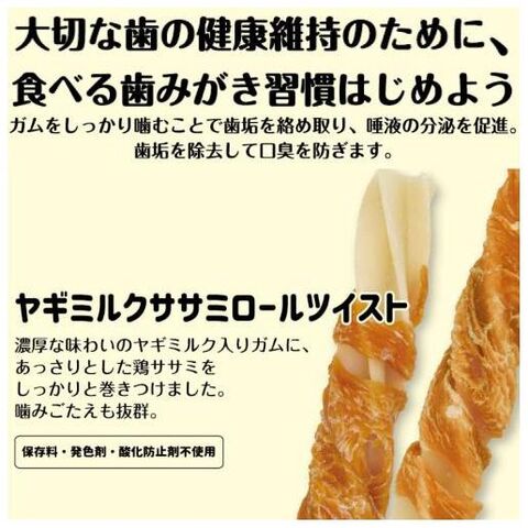 ■原材料:鶏ササミ、コーンスターチ、ヤギミルクパウダー、チーズ(牛乳由来)、グリセリン、ソルビトール、着色料(酸化チタン)