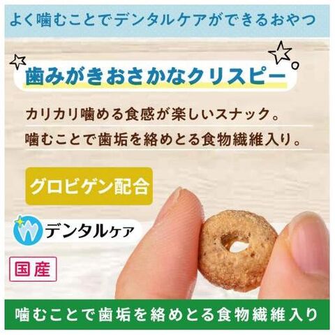 ◆おさかなとお肉、ダブルの旨みにカリカリと噛むことで歯垢を絡めとる食物繊維をプラス。手軽に歯みがき効果が得られるおやつです。