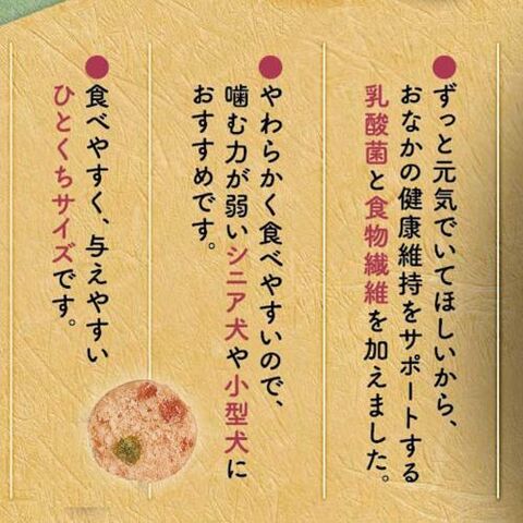 ◆ちぎりやすく食べやすいやわらか仕立てで、小型犬・シニア犬にもおすすめです。