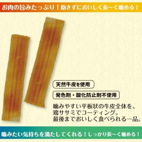 ■原材料:牛皮、鶏ささみ、コーンスターチ、チーズ、えんどう豆たん白、小麦粉、酵母エキス、マルトース、ソルビトール、グリセリン、チキンエキス、保存料(ソルビン酸カリウム)、βカロテン