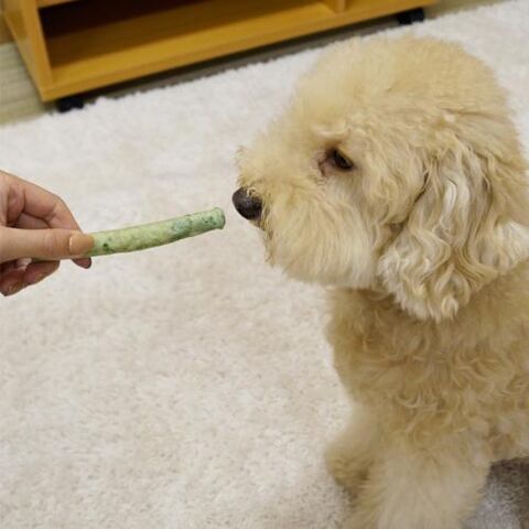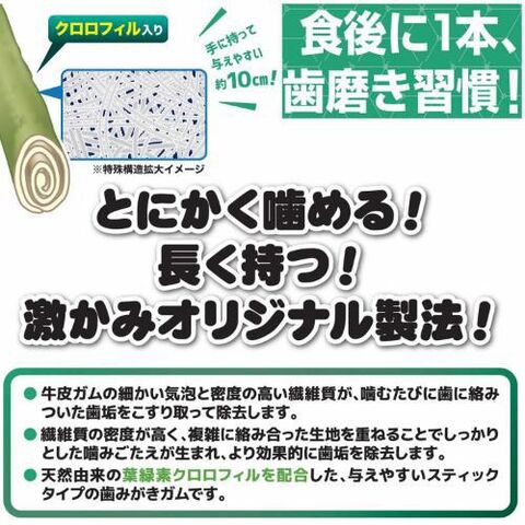 ◆天然由来の葉緑素クロロフィルを配合した、与えやすいスティックタイプの歯みがきガムです。
