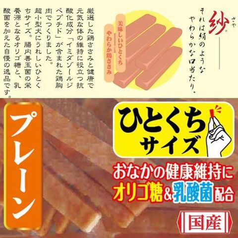 ■原材料:鶏肉(胸肉、ササミ)、コーンスターチ、オリゴ糖、乳酸菌、ソルビトール、グリセリン、プロピレングリコール、ミネラル類(ナトリウム)、リン酸塩(Na)、酸化防止剤(ビタミンC)、発色剤(亜硝酸ナトリウム)、調味料、着色料(赤102、黄5)