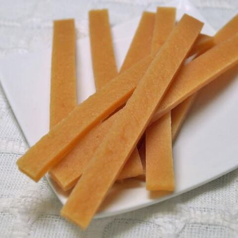 ■原材料:鶏肉(胸肉、ササミ)、小麦粉、グリセリン、トレハロース、プロピレングリコール、ミネラル類(ナトリウム)、リン酸塩(Na)、酸化防止剤(ビタミンC)、発色剤(亜硝酸ナトリウム)、調味料、着色料(赤102、黄5)