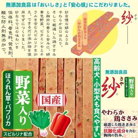 ■原材料:鶏肉(胸肉、ササミ)、コーンスターチ、米粉、野菜類(パプリカ、ほうれん草)、スピルリナ、ソルビトール、グリセリン、pH調整剤、ミネラル類(ナトリウム)、リン酸塩(Na)、調味料
