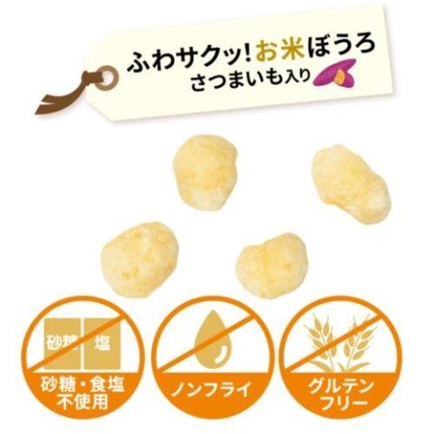 ◆国産うるち米でつくった、ふわサクッ食感のライススナックにさつまいもの自然な甘みをプラス。