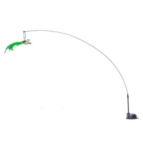 ◆フローリング床にも取り付け可能な強力吸盤と長いワイヤー猫じゃらしがセットになったおもちゃ。